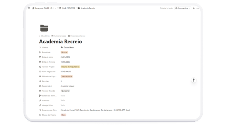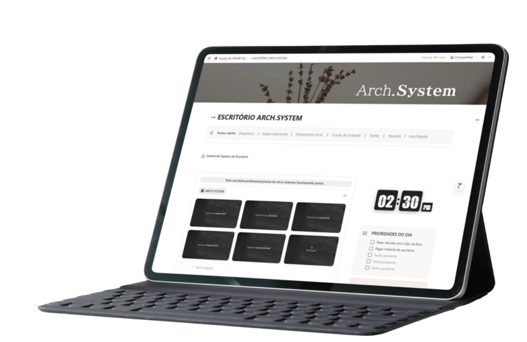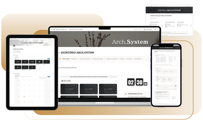 O Arch.System organiza a operação do seu escritório em uma estrutura completa, onde cada área deixa de ser improviso… e passa a funcionar com clareza.